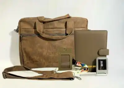 - Paket seminar kit 5 item, biasanya digunakan untuk acara formal, paket ini berisi buku agenda hardcover ring, tas pouch kulit, totebag, pulpen holder hp, tumbler stainless.