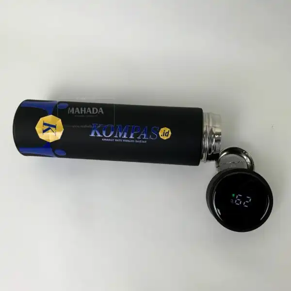 | Fitur | Tumbler berbahan stainless yang memilik layar penunjuk suhu pada tutupnya dan dapat ditambahkan desain grafis pada botolnya |