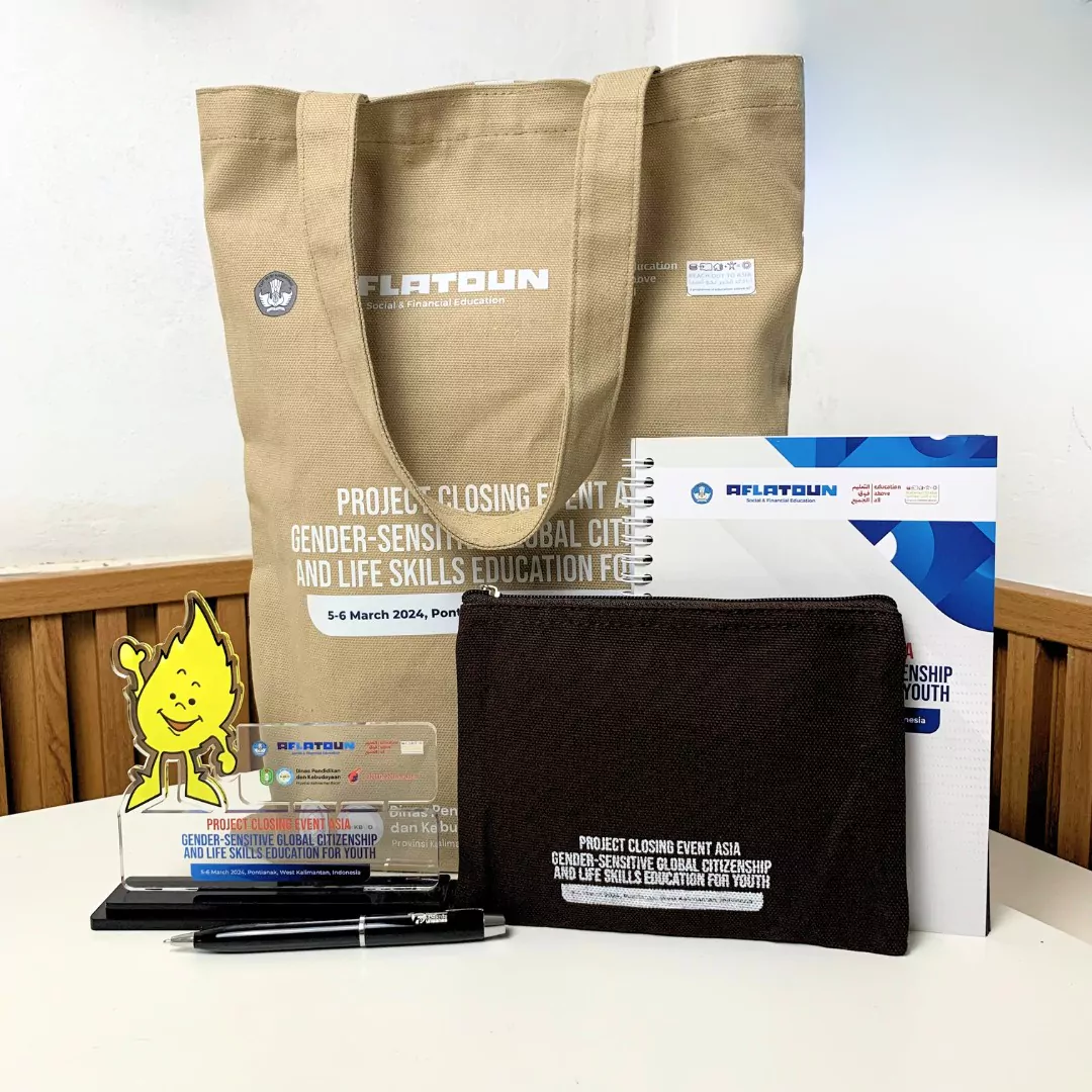Kombinasi souvenir yang cocok untuk acara seminar, workshop, diklat, dan lainnya. Dengan pilihan souvenir beragam, Anda dapat memadu madankan sesuai keinginan. Personalisasikan seminar kit dengan logo perusahaan atau desain grafis. Ditambah dengan tote bag minimalis yang dapat memudahkan Anda untuk membawa item seminar kit.