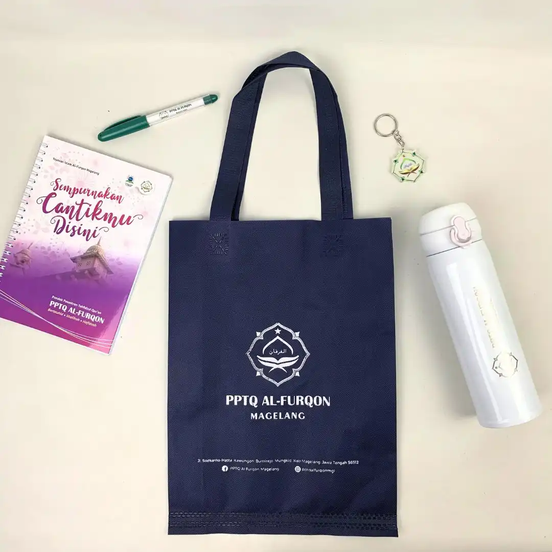 Selain kebebasan untuk mengcustom pilihan souvenir, kami juga menyediakan packaging untuk seminar kit berupa goodiebag dan totebag yang dapat di custom desain sehingga memberikan kesan eksklusif untuk souvenir Anda.
